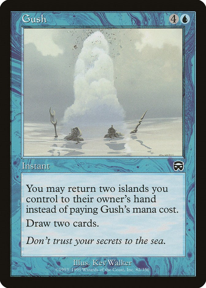 - Rules Text Contains: You may return two islands you control to their owner’s hand instead of paying Gush’s mana cost. <br> Draw two cards.